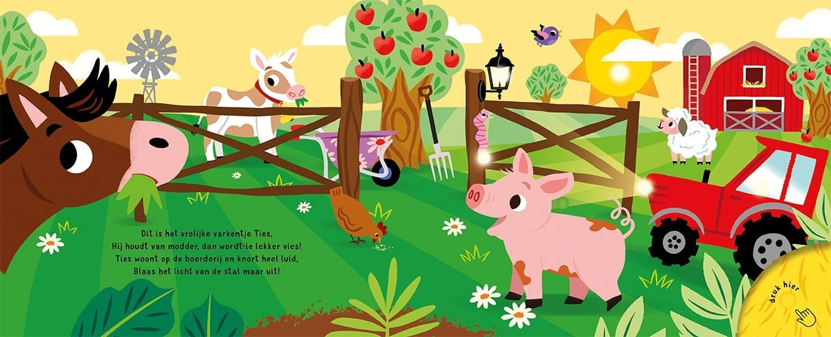 Ga je mee op pad met het vrolijke varkentje Ties? Na een lange dag vol avonturen is Ties erg moe. Blaas jij de lampjes uit, zodat jullie lekker kunnen gaan slapen? Dit betoverende boekje bevat lampjes die je met een druk op de knop laat twinkelen en uit kunt blazen als het bedtijd is. Slaap lekker!